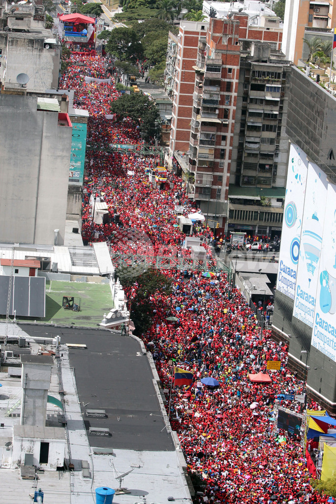 首都カラカス(Caracas)の大統領官邸前ではチャベス大統領への「忠誠を誓う集会」が開かれ、支持派市民ら数千人が参加した。