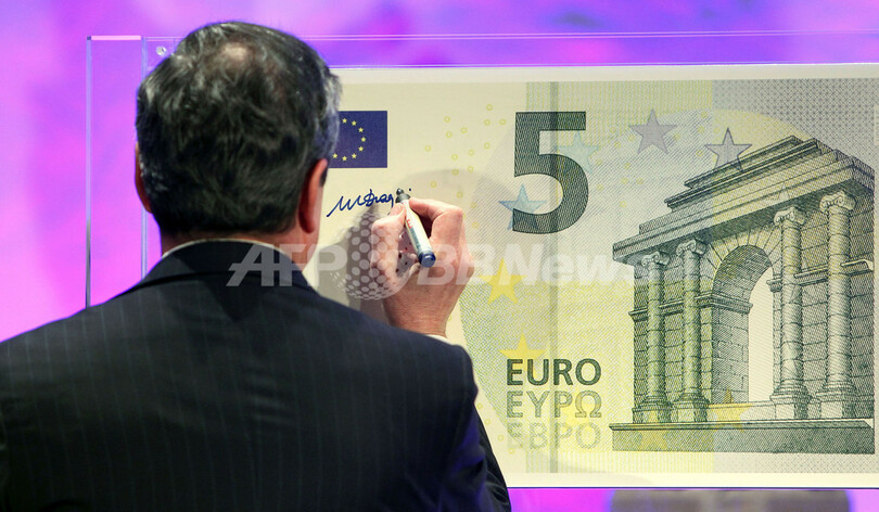ニュース 政治・経済 新5ユーロ札をお披露目、欧州中央銀 2013年1月11日 9:20 発信地:フランクフルト/ドイツ [ ヨーロッパ ドイツ ] このニュースをシェア ‹ › ❮ 7/7 ❯ ドイツ・フランクフルト(Frankfurt)の欧州中央銀行(European Central Bank、ECB)は10日、新しい5ユーロ紙幣のデザインを発表した。写真は、特大サイズの新5ユーロ紙幣に署名するECBのマリオ・ドラギ(Mario Draghi)総裁(2013年1月10日撮影)。(c)AFP/DANIEL ROLAND 画像作成中 ! 【1月11日 AFP】ドイツ・フランクフルト(Frankfurt)の欧州中央銀行(European Central Bank、ECB)は10日、新しい5ユーロ紙幣のデザインを発表した。(c)AFP 政治・経済 一覧へ> メディア・報道関係・法人の方向け 写真・動画 購入のお問合せ>