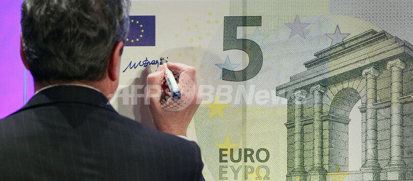 ニュース 政治・経済 新5ユーロ札をお披露目、欧州中央銀 2013年1月11日 9:20 発信地:フランクフルト/ドイツ [ ヨーロッパ ドイツ ] このニュースをシェア ‹ › ❮ 5/7 ❯ ドイツ・フランクフルト(Frankfurt)の欧州中央銀行(European Central Bank、ECB)は10日、新しい5ユーロ紙幣のデザインを発表した。写真は、特大サイズの新5ユーロ紙幣に署名するECBのマリオ・ドラギ(Mario Draghi)総裁(2013年1月10日撮影)。(c)AFP/DANIEL ROLAND 画像作成中 ! 【1月11日 AFP】ドイツ・フランクフルト(Frankfurt)の欧州中央銀行(European Central Bank、ECB)は10日、新しい5ユーロ紙幣のデザインを発表した。(c)AFP 政治・経済 一覧へ> メディア・報道関係・法人の方向け 写真・動画 購入のお問合せ>