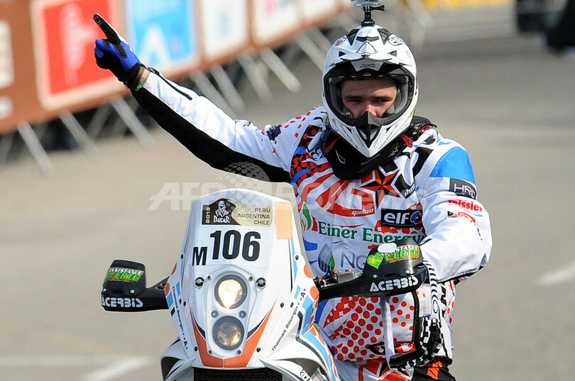【1月12日 AFP】ダカールラリー2013(Dakar Rally 2013)の主催者は11日、二輪部門に参戦している仏人ライダーのトマ・ブールジャン(Thomas Bourgin、25)がチリ警察のパトカーと衝突し、死亡したと発表した。