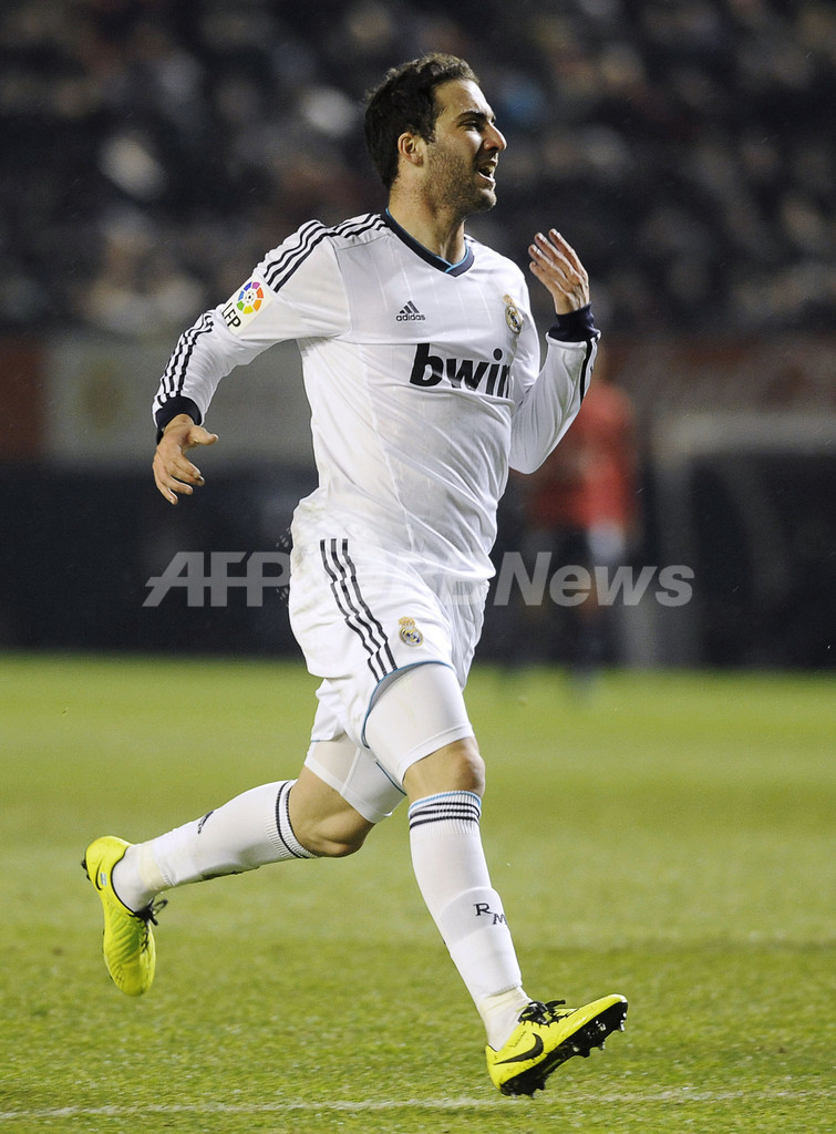 ピッチを駆けるレアル・マドリードのゴンサロ・イグアイン(Gonzalo Higuain、2013年1月12日撮影)。(c)AFP/ANDER GILLENEA