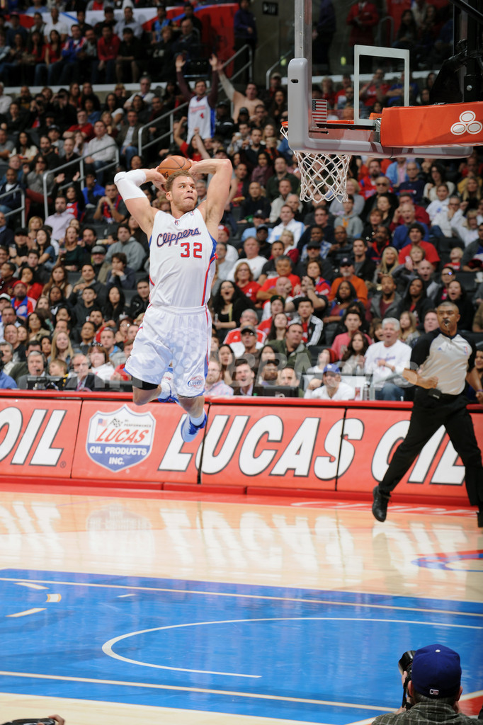 ダンクシュートを狙うロサンゼルス・クリッパーズのブレイク ・グリフィン(Blake Griffin、2013年1月12日撮影)。(c)AFP/Getty Images/Andrew D. Bernstein