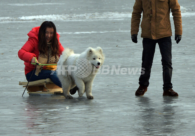 【1月13日 AFP】北京(Beijing)市内の後海(Houhai Lake)では12日、厳寒のため結氷した湖面で犬が元気に遊んでいた。