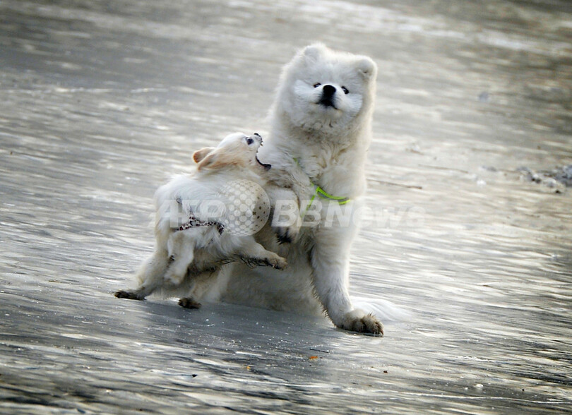 【1月13日 AFP】北京(Beijing)市内の後海(Houhai Lake)では12日、厳寒のため結氷した湖面で犬が元気に遊んでいた。