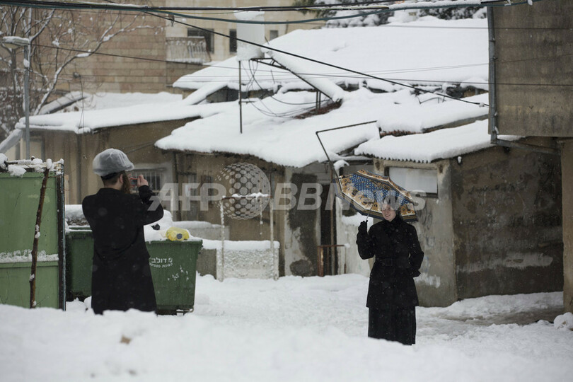 【1月14日 AFP】エルサレム(Jerusalem)とヨルダン川西岸地区(West Bank)周辺は10日、前夜からの大雪で町が真っ白になり、ユダヤ教超正統派の居住区であるメーアー・シェアーリーム(Mea Shearim)などはおとぎの国さながらの景色に様変わりした。(c)AFP