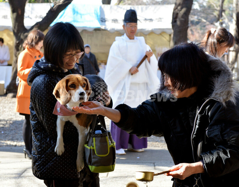 ニュース ライフ こぼれ話 ペットも幸運祈願、都内神社に初詣 2013年1月13日 20:35 発信地:東京 [ アジア・オセアニア 東京 ] このニュースをシェア ‹ › ❮ 13/17 ❯ 東京都新宿区の市谷亀岡八幡宮(Ichigaya Kamegaoka-Hachiman Shrine)では13日、「ペットと一緒の初詣」と題した新年の祈祷が行われ、飼い主約500人がペットを連れて参拝した。写真は、飼い主に抱かれ、祈祷の前に口をゆすぐビーグル(2013年1月13日撮影)。(c)AFP/Yoshikazu TSUNO 画像作成中 ! 【1月13日 AFP】東京都新宿区の市谷亀岡八幡宮(Ichigaya Kamegaoka-Hachiman Shrine)では13日、「ペットと一緒の初詣」と題した新年の祈祷が行われ、飼い主約500人がペットを連れて参拝した。(c)AFP ライフ 一覧へ> メディア・報道関係・法人の方向け 写真・動画 購入のお問合せ>