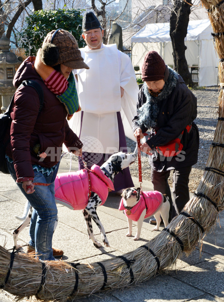 ニュース ライフ こぼれ話 ペットも幸運祈願、都内神社に初詣 2013年1月13日 20:35 発信地:東京 [ アジア・オセアニア 東京 ] このニュースをシェア ‹ › ❮ 10/17 ❯ 東京都新宿区の市谷亀岡八幡宮(Ichigaya Kamegaoka-Hachiman Shrine)では13日、「ペットと一緒の初詣」と題した新年の祈祷が行われ、飼い主約500人がペットを連れて参拝した。写真は、飼い主と共にしめ縄の輪をくぐり、祈祷の会場に入るフレンチブルドッグ(右)とダルメシアン(左)(2013年1月13日撮影)。(c)AFP/Yoshikazu TSUNO 画像作成中 ! 【1月13日 AFP】東京都新宿区の市谷亀岡八幡宮(Ichigaya Kamegaoka-Hachiman Shrine)では13日、「ペットと一緒の初詣」と題した新年の祈祷が行われ、飼い主約500人がペットを連れて参拝した。(c)AFP ライフ 一覧へ> メディア・報道関係・法人の方向け 写真・動画 購入のお問合せ>