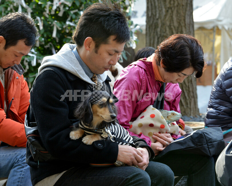 ニュース ライフ こぼれ話 ペットも幸運祈願、都内神社に初詣 2013年1月13日 20:35 発信地:東京 [ アジア・オセアニア 東京 ] このニュースをシェア ‹ › ❮ 8/17 ❯ 東京都新宿区の市谷亀岡八幡宮(Ichigaya Kamegaoka-Hachiman Shrine)では13日、「ペットと一緒の初詣」と題した新年の祈祷が行われ、飼い主約500人がペットを連れて参拝した。写真は、祈祷を受けるペットと飼い主たち(2013年1月13日撮影)。(c)AFP/Yoshikazu TSUNO 画像作成中 ! 【1月13日 AFP】東京都新宿区の市谷亀岡八幡宮(Ichigaya Kamegaoka-Hachiman Shrine)では13日、「ペットと一緒の初詣」と題した新年の祈祷が行われ、飼い主約500人がペットを連れて参拝した。(c)AFP ライフ 一覧へ> メディア・報道関係・法人の方向け 写真・動画 購入のお問合せ>