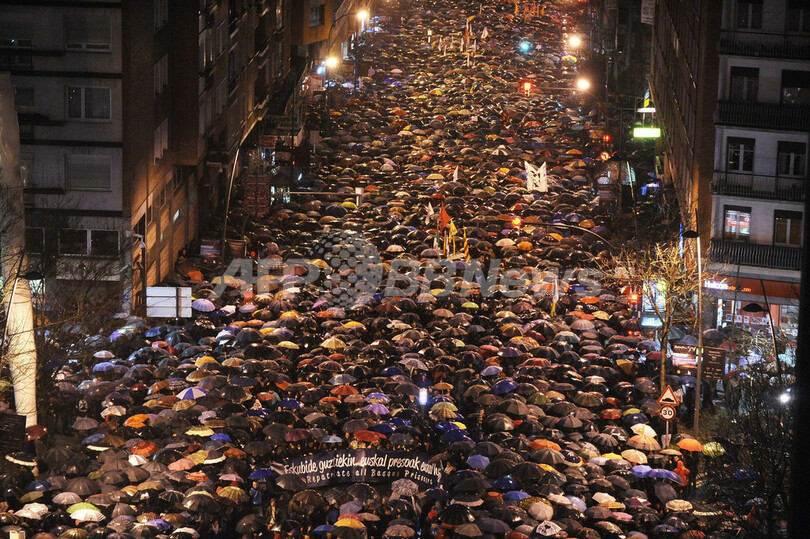 ニュース 社会 拘置中のETAメンバーの移送を要求、スペインでデモ 2013年1月14日 6:41 発信地:ビルバオ/スペイン [ ヨーロッパ スペイン ] このニュースをシェア ‹ › ❮ 12/12 ❯ スペイン北部バスク地方(Basque) のビルバオ(Bilbao)で12日、拘置中の「バスク祖国と自由(ETA)」のメンバーの身柄をバスク地方の刑務所に移送することを求めるデモ行進が行われ、数万人が雨の中で傘をさしながら参加した。デモ主催者によると、拘置中の700人中607人は自宅から平均750キロ離れた刑務所におり、フランスやポルトガル、英国で収容されている事例もある。また、13人は深刻な容体だという。(2013年1月12日撮影)。(c)AFP/RAFA RIVAS 画像作成中 ! 【1月14日 AFP】 スペイン北部バスク地方(Basque) のビルバオ(Bilbao)で12日、拘置中の「バスク祖国と自由(ETA)」のメンバーの身柄をバスク地方の刑務所に移送することを求めるデモ行進が行われ、数万人が雨の中で傘をさしながら参加した。デモ主催者によると、拘置中の700人中607人は自宅から平均750キロ離れた刑務所におり、フランスやポルトガル、英国で収容されている事例もある。また、13人は深刻な容体だという。(c)AFP 社会 一覧へ> メディア・報道関係・法人の方向け 写真・動画 購入のお問合せ>