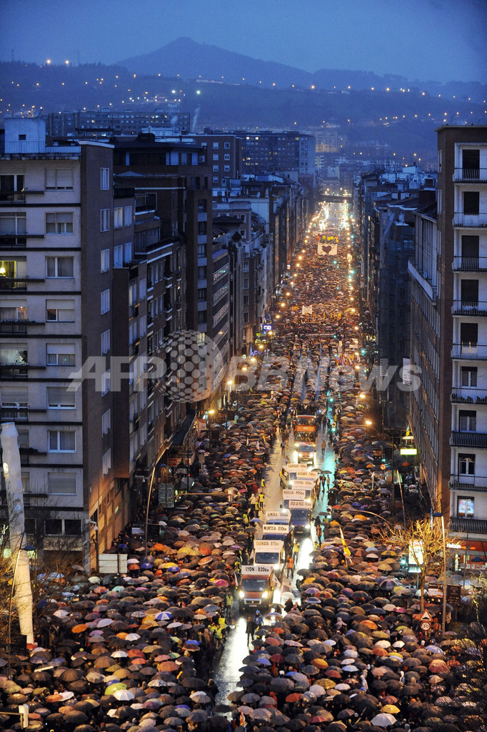ニュース 社会 拘置中のETAメンバーの移送を要求、スペインでデモ 2013年1月14日 6:41 発信地:ビルバオ/スペイン [ ヨーロッパ スペイン ] このニュースをシェア ‹ › ❮ 10/12 ❯ スペイン北部バスク地方(Basque) のビルバオ(Bilbao)で12日、拘置中の「バスク祖国と自由(ETA)」のメンバーの身柄をバスク地方の刑務所に移送することを求めるデモ行進が行われ、数万人が雨の中で傘をさしながら参加した。デモ主催者によると、拘置中の700人中607人は自宅から平均750キロ離れた刑務所におり、フランスやポルトガル、英国で収容されている事例もある。また、13人は深刻な容体だという。(2013年1月12日撮影)。(c)AFP/RAFA RIVAS 画像作成中 ! 【1月14日 AFP】 スペイン北部バスク地方(Basque) のビルバオ(Bilbao)で12日、拘置中の「バスク祖国と自由(ETA)」のメンバーの身柄をバスク地方の刑務所に移送することを求めるデモ行進が行われ、数万人が雨の中で傘をさしながら参加した。デモ主催者によると、拘置中の700人中607人は自宅から平均750キロ離れた刑務所におり、フランスやポルトガル、英国で収容されている事例もある。また、13人は深刻な容体だという。(c)AFP 社会 一覧へ> メディア・報道関係・法人の方向け 写真・動画 購入のお問合せ>