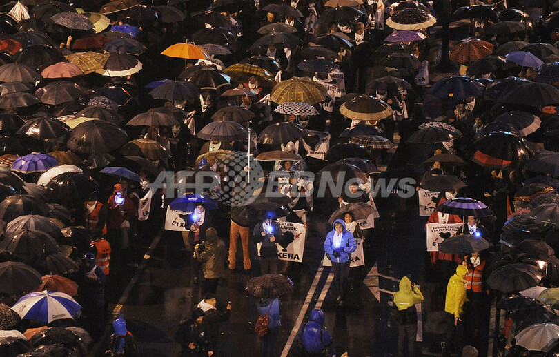 ニュース 社会 拘置中のETAメンバーの移送を要求、スペインでデモ 2013年1月14日 6:41 発信地:ビルバオ/スペイン [ ヨーロッパ スペイン ] このニュースをシェア ‹ › ❮ 7/12 ❯ スペイン北部バスク地方(Basque) のビルバオ(Bilbao)で12日、拘置中の「バスク祖国と自由(ETA)」のメンバーの身柄をバスク地方の刑務所に移送することを求めるデモ行進が行われ、数万人が雨の中で傘をさしながら参加した。デモ主催者によると、拘置中の700人中607人は自宅から平均750キロ離れた刑務所におり、フランスやポルトガル、英国で収容されている事例もある。また、13人は深刻な容体だという。(2013年1月12日撮影)。(c)AFP/RAFA RIVAS 画像作成中 ! 【1月14日 AFP】 スペイン北部バスク地方(Basque) のビルバオ(Bilbao)で12日、拘置中の「バスク祖国と自由(ETA)」のメンバーの身柄をバスク地方の刑務所に移送することを求めるデモ行進が行われ、数万人が雨の中で傘をさしながら参加した。デモ主催者によると、拘置中の700人中607人は自宅から平均750キロ離れた刑務所におり、フランスやポルトガル、英国で収容されている事例もある。また、13人は深刻な容体だという。(c)AFP 社会 一覧へ> メディア・報道関係・法人の方向け 写真・動画 購入のお問合せ>