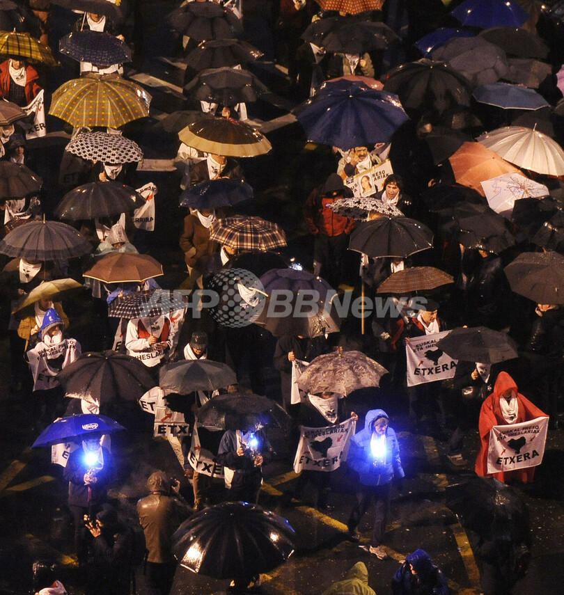 ニュース 社会 拘置中のETAメンバーの移送を要求、スペインでデモ 2013年1月14日 6:41 発信地:ビルバオ/スペイン [ ヨーロッパ スペイン ] このニュースをシェア ‹ › ❮ 6/12 ❯ スペイン北部バスク地方(Basque) のビルバオ(Bilbao)で12日、拘置中の「バスク祖国と自由(ETA)」のメンバーの身柄をバスク地方の刑務所に移送することを求めるデモ行進が行われ、数万人が雨の中で傘をさしながら参加した。デモ主催者によると、拘置中の700人中607人は自宅から平均750キロ離れた刑務所におり、フランスやポルトガル、英国で収容されている事例もある。また、13人は深刻な容体だという。(2013年1月12日撮影)。(c)AFP/RAFA RIVAS 画像作成中 ! 【1月14日 AFP】 スペイン北部バスク地方(Basque) のビルバオ(Bilbao)で12日、拘置中の「バスク祖国と自由(ETA)」のメンバーの身柄をバスク地方の刑務所に移送することを求めるデモ行進が行われ、数万人が雨の中で傘をさしながら参加した。デモ主催者によると、拘置中の700人中607人は自宅から平均750キロ離れた刑務所におり、フランスやポルトガル、英国で収容されている事例もある。また、13人は深刻な容体だという。(c)AFP 社会 一覧へ> メディア・報道関係・法人の方向け 写真・動画 購入のお問合せ>