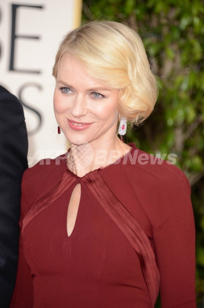 第70回ゴールデン・グローブ賞(Golden Globe Awards)授賞式が13日、米ビバリーヒルズ(Beverly Hills)のビバリー・ヒルトン・ホテル(Beverly Hilton Hotel)で開催された。写真は、レッドカーペットに登場した女優ナオミ・ワッツ(Naomi Watts、2013年1月13日撮影)。(c)AFP/Getty Images/Jason Merritt
