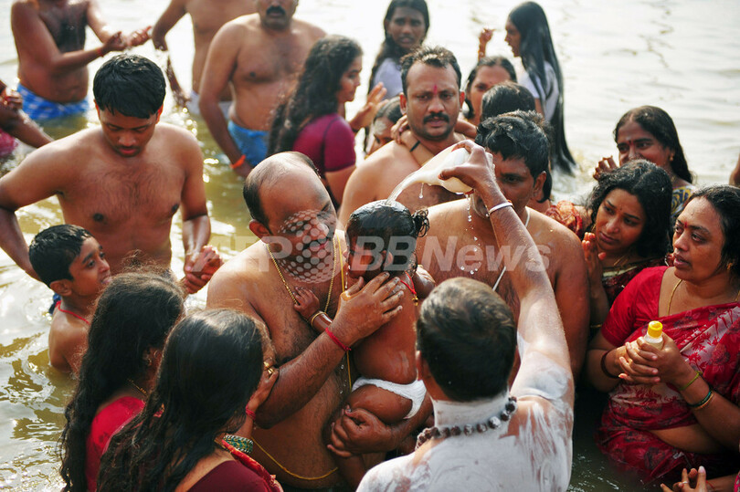 【1月14日 AFP】世界最大の宗教的祝祭とも言われるヒンズー教の祭典「クンブメーラ(Kumbh Mela、「水差しの祭典」の意)」が14日、インドのアラハバード(Allahabad)で始まり、全身に灰をまとった裸体の聖者に導かれ、多数の信者が罪を洗い流そうと、聖なる川、ガンジス(Ganges)川で沐浴(もくよく)を行った。祭典が終わるまでの55日間で、最大1億人の信者が沐浴に訪れるとみられている。