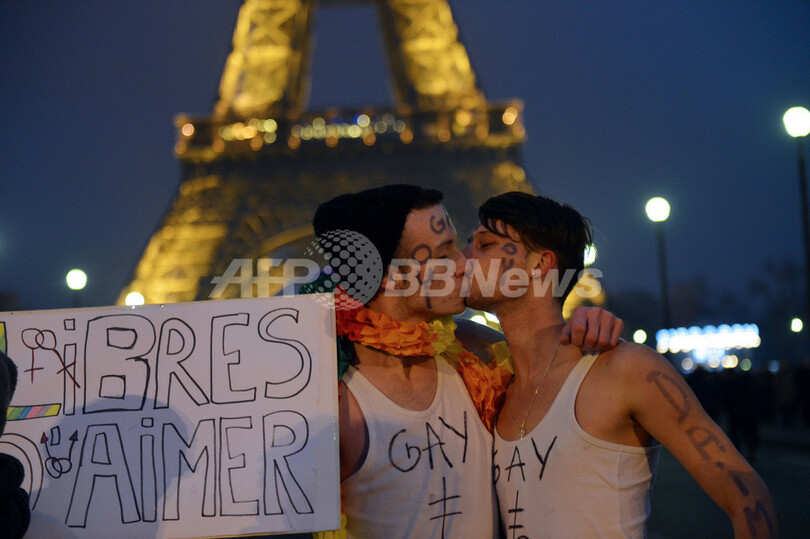 与党・社会党が推進する同性婚合法化法案は月末に議会で審議される予定だが、フランスで2大宗教人口を持つキリスト教カトリックとイスラム教の信者の多くが反発しているほか、野党の右派政党も反対している。(c)AFP