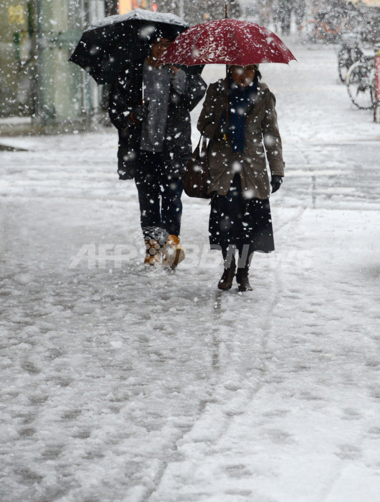 【1月14日 AFP】成人の日の14日、日本の太平洋岸は低気圧の影響で広い範囲で悪天候に見舞われ、初雪となった東京都心でも夕方までに7センチメートルの積雪を観測した。この雪で、飛行機の欠航や鉄道の運休、高速道路の通行止めなど交通への影響が相次いでいる。