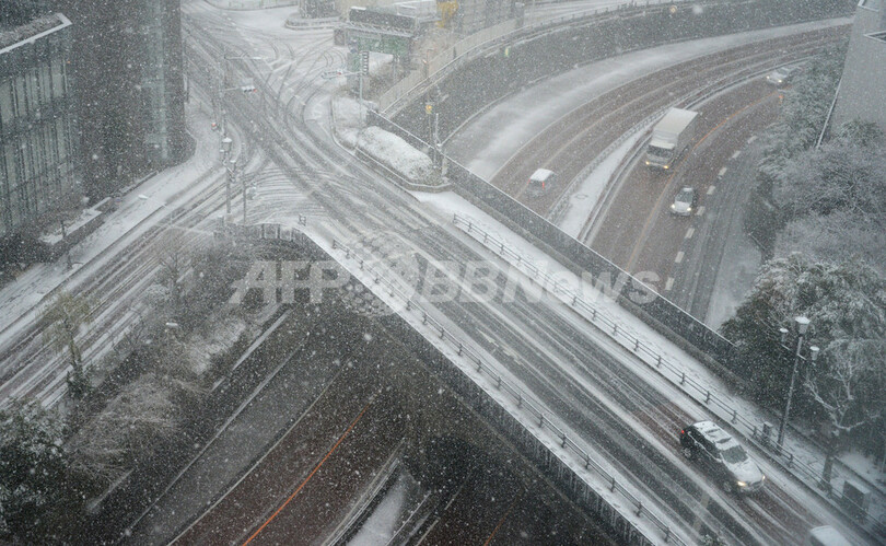 【1月14日 AFP】成人の日の14日、日本の太平洋岸は低気圧の影響で広い範囲で悪天候に見舞われ、初雪となった東京都心でも夕方までに7センチメートルの積雪を観測した。この雪で、飛行機の欠航や鉄道の運休、高速道路の通行止めなど交通への影響が相次いでいる。