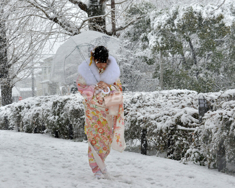 東京都心で積雪、晴れ着も白く染まる