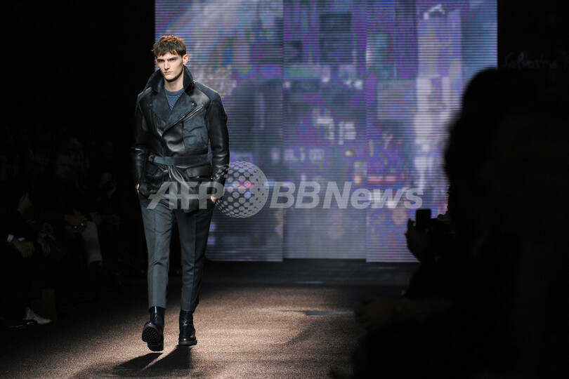 【1月15日 AFP】イタリア・ミラノ市内で11日から16日まで13/14年秋冬ミラノ・メンズコレクションが開かれている。
