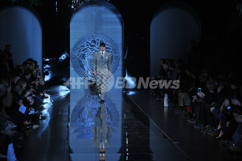 12日には、ドナテッラ・ヴェルサーチ(Donatella Versace)が手がける「ヴェルサーチ(VERSACE)」が新作を発表した。(c)AFP