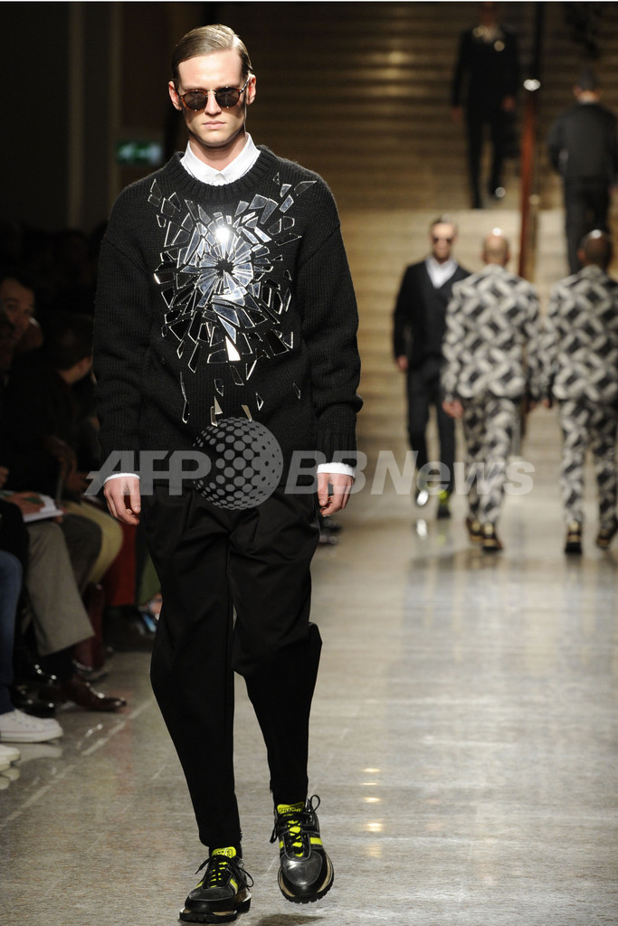 【1月15日 AFP】イタリア・ミラノ市内で11日から16日まで13/14年秋冬ミラノ・メンズコレクションが開かれている。
