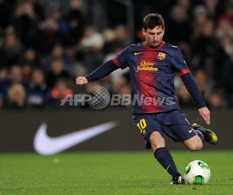 FKを蹴るFCバルセロナのリオネル・メッシ(Lionel Messi、2013年1月16日撮影)。(c)AFP/LLUIS GENE