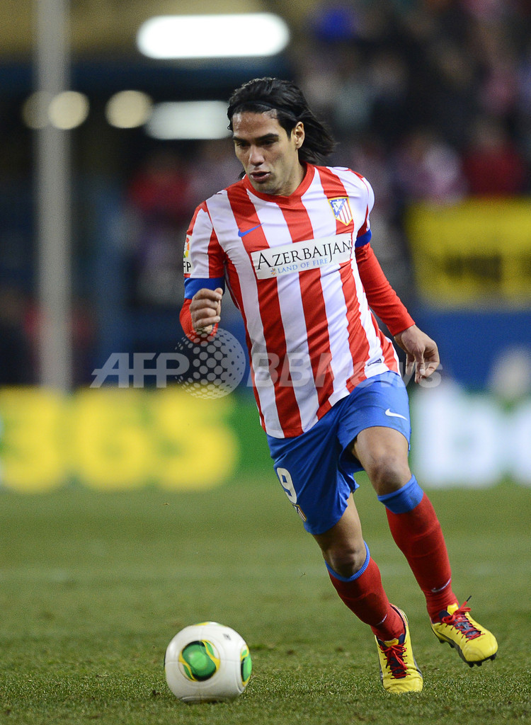 ドリブルでボールを運ぶアトレティコ・マドリードのラダメル・ファルカオ・ガルシア(Radamel Falcao Garcia、2013年1月17日撮影)。(c)AFP/PIERRE-PHILIPPE MARCOU