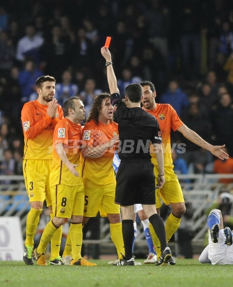 退場者を出したFCバルセロナは、試合終了間際にソシエダのイマノル・アギレチェ(Imanol Agirretxe)に決勝点を奪われ、今シーズン開幕から続いていたリーグ戦の無敗記録が止まった。