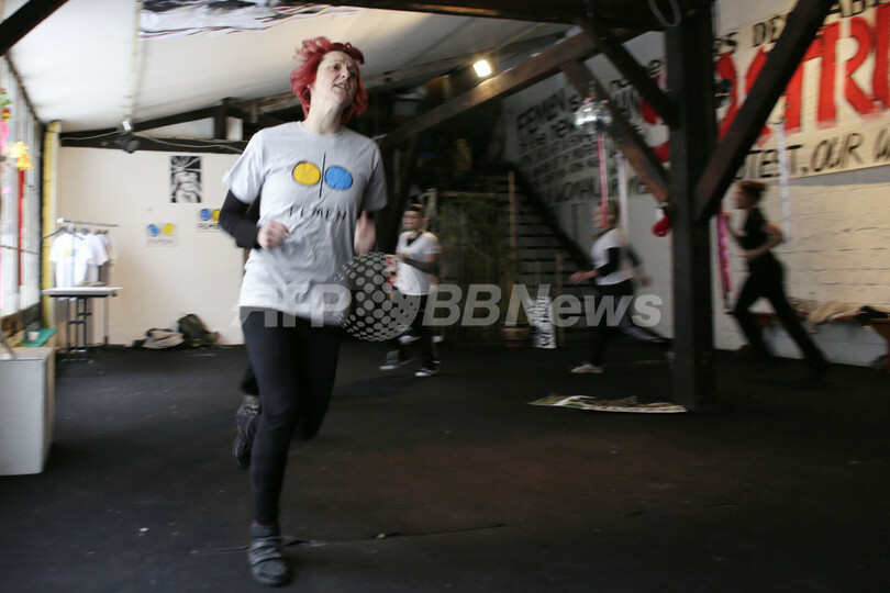 【1月20日 AFP】ウクライナの女性権利団体「FEMEN」のメンバーらが19日、パリ市内の劇場を改装した「ラボワール・モダン・パリジャン(Lavoir Modern Parisien)」にある拠点で、トレーニングや抗議活動の練習を行った。FEMENは欧州からロシアまでの各地で、様々な抗議活動をトップレスで行うことで知られている。(c)AFP