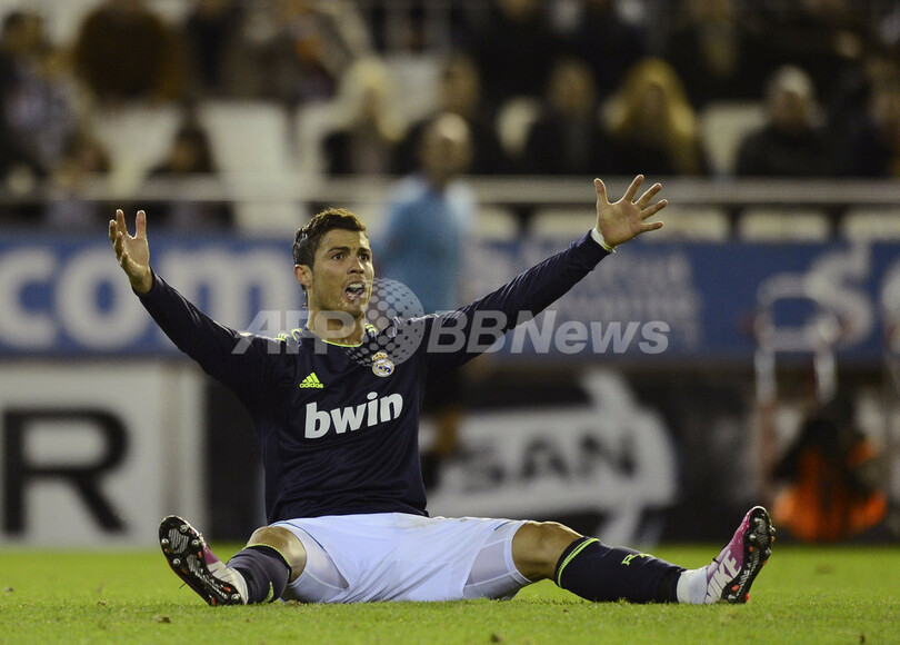 判定に不満を表すレアル・マドリードのクリスティアーノ・ロナウド(Cristiano Ronaldo、2013年1月20日撮影)。(c)AFP/PIERRE-PHILIPPE MARCOU