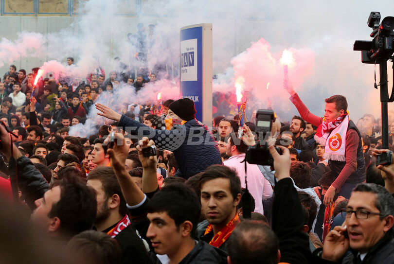 空港でウェズレイ・スナイデルのトルコ入りを待つガラタサライのサポーター(2013年1月21日撮影)。(c)AFP