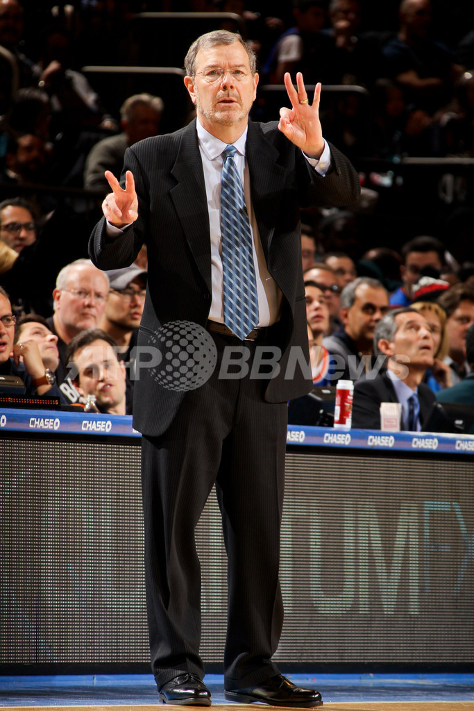 コートサイドから指示を出すブルックリン・ネッツのP・J・カーリシモ(P.J. Carlesimo)暫定ヘッドコーチ(2013年1月21日撮影)。(c)AFP/Getty Images/NBAE/Nathaniel S. Butler