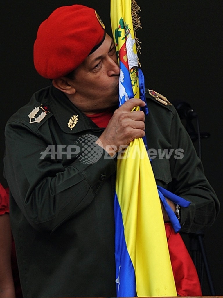 ニュース 政治・経済 【写真特集】ベネズエラのウゴ・チャベス大統領死去 2013年3月6日 7:09 発信地:その他 [ 例外 その他 ] このニュースをシェア ‹ › ❮ 19/48 ❯ ベネズエラのウゴ・チャベス(Hugo Chavez)大統領が5日、死去した。58歳だった。大統領の生涯を写真で振り返る。写真はベネズエラ首都カラカス(Caracas)の大統領官邸で、ベネズエラの国旗にキスをするチャベス大統領(2011年7月4日撮影)。(c)AFP/Juan BARRETO 画像作成中 ! 【3月6日 AFP】(写真追加)ベネズエラのウゴ・チャベス(Hugo Chavez)大統領が5日、死去した。58歳だった。大統領の生涯を写真で振り返る。(c)AFP 政治・経済 一覧へ> メディア・報道関係・法人の方向け 写真・動画 購入のお問合せ>