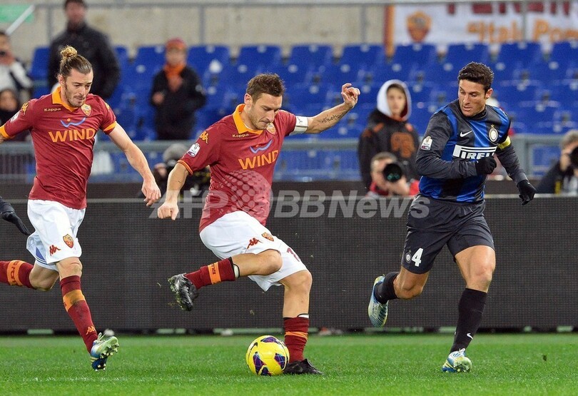 【1月24日 AFP】サッカーイタリア杯2012-13(Italian Cup 2012-13)は23日、準決勝の第1戦が行われ、インテル(Inter Milan)は1-2でASローマ(AS Roma)に敗れた。