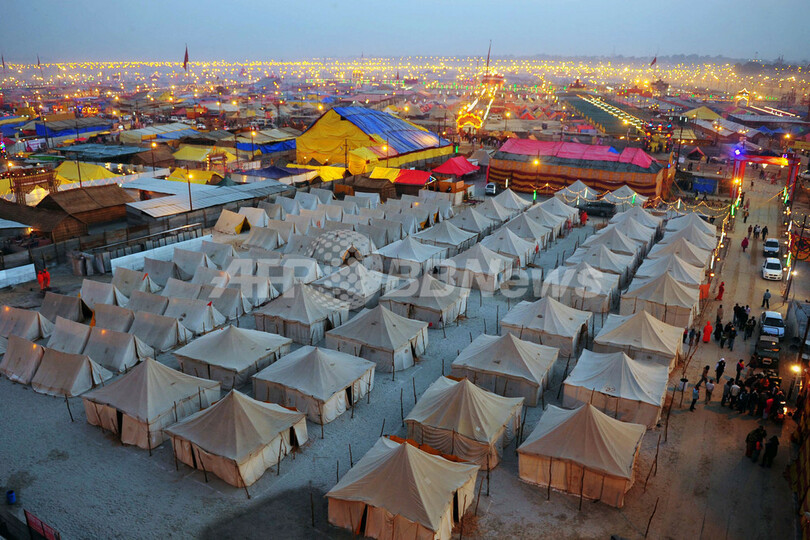 【1月24日 AFP】インド北部のガンジス川(Ganges River)とヤムナー川(Yamuna River)が交わるアラハバード(Allahabad)は現在、世界最大の宗教行事、ヒンズー教の祭典「クンブメーラ(Kumbh Mela、「水差しの祭典」の意)」の真っただ中だ。クンブメーラは55日間にわたって行われ、1億人もの巡礼者が聖なる川で罪を洗い流して身を清める。(c)AFP