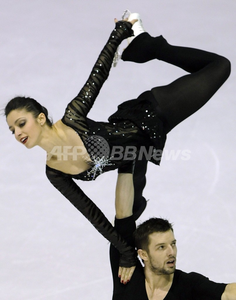 同日行われたアイスダンス・ショートダンス(SD)では、エカテリーナ・ボブロワ(Ekaterina Bobrova)/ドミトリ・ソロビエフ(Dmitri Soloviev)組が69.42点で首位発進を果たした。68.98点でロシアのエレーナ・イリニフ(Elena Ilinykh)/ニキータ・カツァラポフ(Nikita Katsalapov)組が2位に、66.53点でイタリアのアンナ・カッペリーニ(Anna Cappellini)/ルカ・ラノッテ(Luca Lanotte)組が3位に続いている。(c)AFP