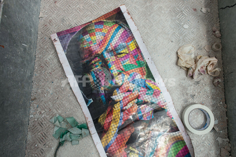 【1月24日 AFP】ブラジル・サンパウロ(Sao Paulo)の中心部で、高さ56メートルのビルの壁に、昨年12月に亡くなった同国を代表する建築家オスカー・ニーマイヤー(Oscar Niemeyer)氏の肖像を描く、同国の壁画アーティスト、エドゥアルド・コブラ(Eduardo Kobra)さん。世界的に有名なコブラさんは5年前にビルの管理者と交渉を始め、ようやくいま、夢が実現した。25日にサンパウロ市が誕生459年を迎えるのを前に、コブラさんは自主的に制作を進めている。(c)AFP