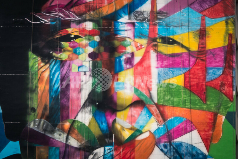 【1月24日 AFP】ブラジル・サンパウロ(Sao Paulo)の中心部で、高さ56メートルのビルの壁に、昨年12月に亡くなった同国を代表する建築家オスカー・ニーマイヤー(Oscar Niemeyer)氏の肖像を描く、同国の壁画アーティスト、エドゥアルド・コブラ(Eduardo Kobra)さん。世界的に有名なコブラさんは5年前にビルの管理者と交渉を始め、ようやくいま、夢が実現した。25日にサンパウロ市が誕生459年を迎えるのを前に、コブラさんは自主的に制作を進めている。(c)AFP