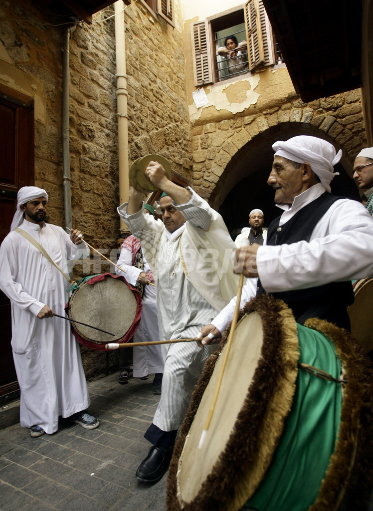 【1月25日 AFP】イスラム教の預言者ムハンマド(Mohammed)の生誕祭「Mawlid al-Nabawi」の24日、レバノン南部の港町サイダ(シドン、Sidon)ではスーフィー(Sufi、イスラム神秘主義者)たちが頬に金属の串を刺すなどして儀式に参加した。(c)AFP