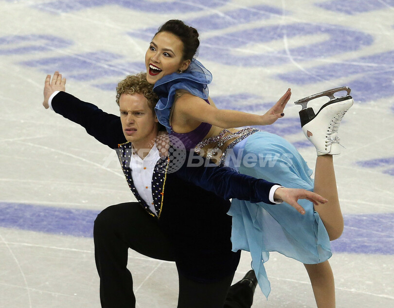 2位には70.80点を記録したメディソン・チョーク(Madison Chock)/エヴァン・ベイツ(Evan Bates)組が、3位には69.63点を記録したマイア・シブタニ(Maia Shibutani)/アレックス・ シブタニ(Alex Shibutani)組が入った。(c)AFP