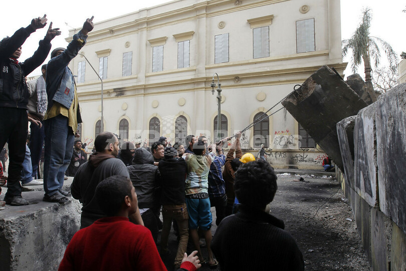 2011年の革命で象徴的な場所となったカイロ(Cairo)のタハリール広場(Tahrir Square)では25日朝、数千人が集まり、ムハンマド・モルシ(Mohamed Morsi)大統領とその後ろ盾であるムスリム同胞団(Muslim Brotherhood)に対して怒りの声を上げた。同広場では前日にも、広場を遮断するために置かれたコンクリートの壁を崩そうとした抗議デモ参加者らと警察の間で衝突が起きている。