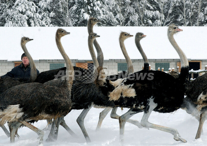 ニュース ライフ 寒さも何のその、ベラルーシで飼育されるダチョウ 2013年1月26日 15:27 発信地:ベラルーシ [ ロシア・CIS ベラルーシ ] このニュースをシェア ‹ › ❮ 4/8 ❯ ベラルーシの首都ミンスク(Minsk)から南西およそ300キロメートルにある村のダチョウ園では、寒さの中でも元気に走り回るダチョウたちの姿が見られた。写真は、一斉に移動するダチョウたち(2013年1月24日撮影)。(c)AFP/VIKTOR DRACHEV 画像作成中 ! 【1月26日 AFP】ベラルーシの首都ミンスク(Minsk)から南西およそ300キロメートルにある村のダチョウ園では、寒さの中でも元気に走り回るダチョウたちの姿が見られた。(c)AFP ライフ 一覧へ> メディア・報道関係・法人の方向け 写真・動画 購入のお問合せ>