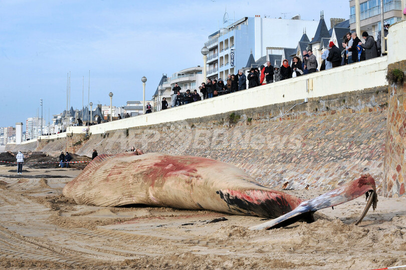 ニュース 環境・科学 全長18メートルのクジラ、仏西部の海岸に漂着 2013年1月26日 16:51 発信地:レ・サーブル・ドロンヌ/フランス [ ヨーロッパ フランス ] このニュースをシェア ‹ › ❮ 15/22 ❯ フランス西部レ・サーブル・ドロンヌ(Les Sables d'Olonne)の海岸で25日早朝、全長18メートルのクジラが打ち上げられているのがみつかった。写真は、浜辺に横たわるクジラと集まった人たち(2013年1月25日撮影)。(c)AFP/FRANK PERRY 画像作成中 ! 【1月26日 AFP】フランス西部レ・サーブル・ドロンヌ(Les Sables d'Olonne)の海岸で25日早朝、全長18メートルのクジラが打ち上げられているのがみつかった。(c)AFP 環境・科学 一覧へ> メディア・報道関係・法人の方向け 写真・動画 購入のお問合せ>