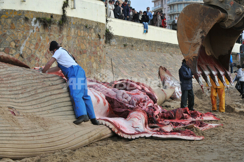 ニュース 環境・科学 全長18メートルのクジラ、仏西部の海岸に漂着 2013年1月26日 16:51 発信地:レ・サーブル・ドロンヌ/フランス [ ヨーロッパ フランス ] このニュースをシェア ‹ › ❮ 3/22 ❯ フランス西部レ・サーブル・ドロンヌ(Les Sables d'Olonne)の海岸で25日早朝、全長18メートルのクジラが打ち上げられているのがみつかった。写真は、浜辺で解体されるクジラと集まった人たち(2013年1月25日撮影)。(c)AFP/FRANK PERRY 画像作成中 ! 【1月26日 AFP】フランス西部レ・サーブル・ドロンヌ(Les Sables d'Olonne)の海岸で25日早朝、全長18メートルのクジラが打ち上げられているのがみつかった。(c)AFP 環境・科学 一覧へ> メディア・報道関係・法人の方向け 写真・動画 購入のお問合せ>