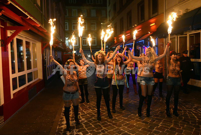 FEMENがトップレスで売春に抗議、独ハンブルク