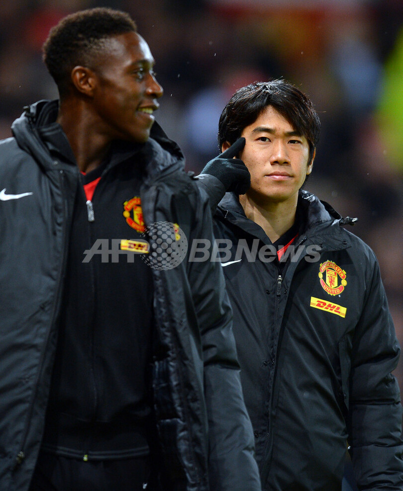 試合前にベンチへ向かう香川真司(Shinji Kagawa、右、2013年1月26日撮影)。(c)AFP/ANDREW YATES