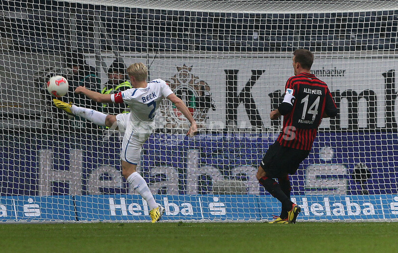 フランクフルトは前半35分、 乾貴士(Takashi Inui)からの巧みな浮き球のパスに相手ディフェンス陣の裏に抜けたマルティン・ラニヒ(Martin Lanig)が合わせ、先制点を奪った。