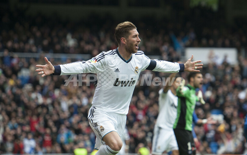 後半10分に先制ゴールを決めて歓喜するレアル・マドリードのセルヒオ・ラモス(Sergio Ramos、2013年1月27日撮影)。(c)AFP/DANI POZO