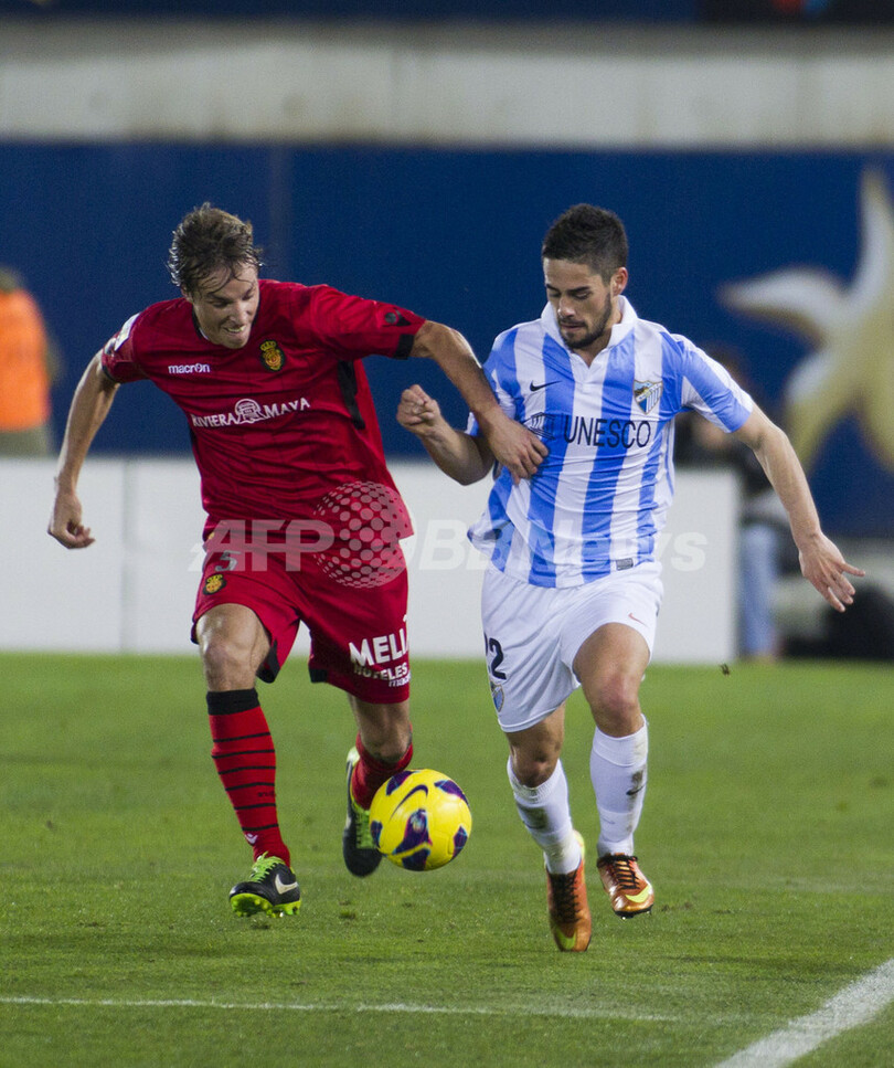 マジョルカのトマス・ピナ(Tomas Pina Isla、左)とボールを競るマラガのイスコ(Isco Alarcon、2013年1月27日撮影)。(c)AFP/Jaime REINA
