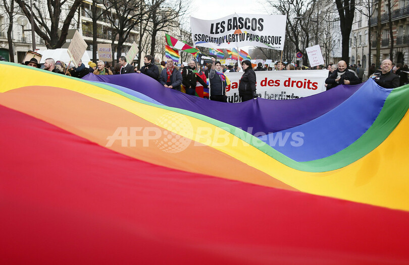 仏パリで同性婚支持の大規模デモ、合法化法案の議会提出控え